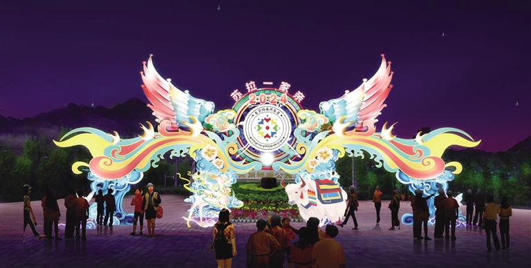 記者了解到,“點亮拉薩——秦淮燈會”在宗角祿康公園東門設(shè)置大型燈組,搭配拉薩的吉祥物牦牛、江蘇的吉祥物麋鹿,燈組用拉薩經(jīng)典配色,搭建飄逸的彩帶雙翼,表達“蘇拉一家親,攜手向未來”的寓意。在公園走廊里、草坪上,還用精致的現(xiàn)代光影作品,安排展示江南煙雨、小橋流水、青磚黛瓦、梅瓶明珠、桃花仙鶴、油傘折扇、上元燈彩等富有江蘇特色的美景雅韻以及具有拉薩特色的建筑和文化精品。