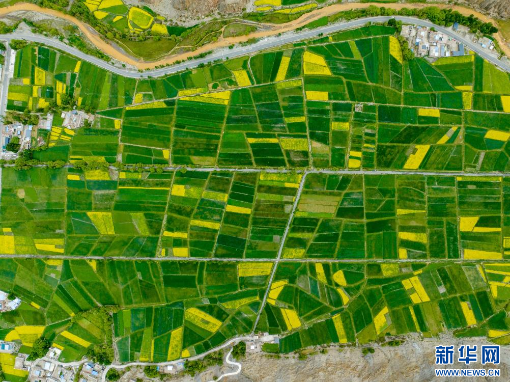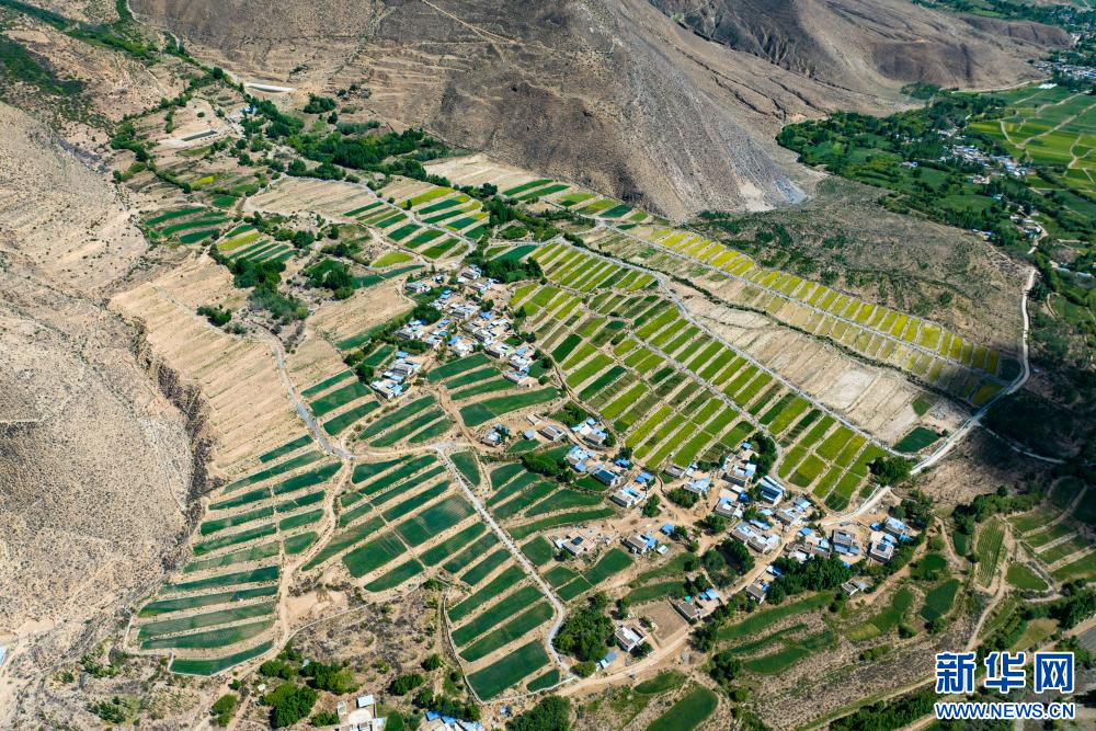 6月23日在西藏山南市乃東區(qū)境內(nèi)拍攝的田園風(fēng)光(無(wú)人機(jī)照片)。新華網(wǎng) 旦增努布 攝