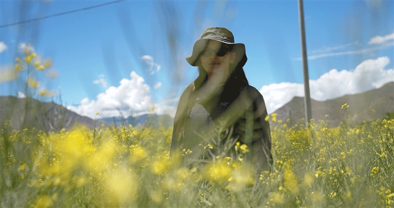 7月初,記者一行驅(qū)車從拉薩出發(fā),在開往錯那市的路上,經(jīng)過了瓊結(jié)縣百畝油菜花和隆子縣錯落有致的油菜花田。烈日下,油菜花是這片大地的“主角”,是山南市每年盛夏從不缺席的芬芳。一路走來,油菜花肆意地盛開在道路兩旁、村莊里、半山腰……微風拂過,花朵搖曳生姿綻放著,從稍遠處看,俗坡奴村錯落分布在黃綠交錯的田野中,仿若一幅美麗清新的鄉(xiāng)村田野詩畫。此時,看風景的行人紛紛鉆進花田中,仿佛是跟油菜花“爭芳斗艷”。