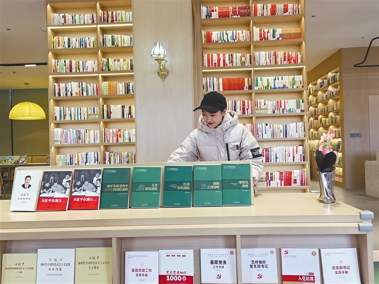 那曲籍高校畢業(yè)生央曲在“溫暖嘉·色尼城市書房”(嘉興市在那曲援建的首座城市書房)工作。記者 萬靖 攝
