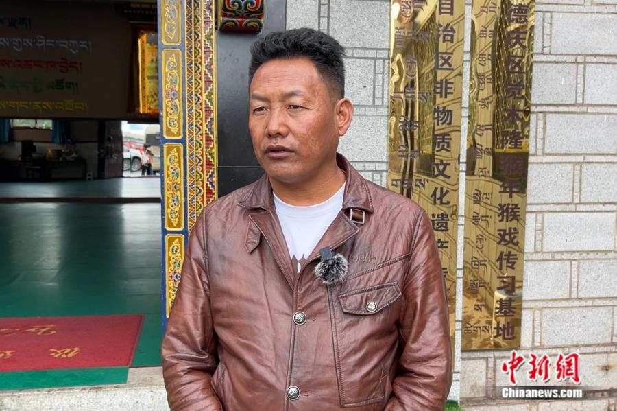 覺木隆藏戲現(xiàn)任團(tuán)長、西藏自治區(qū)級(jí)非遺代表性傳承人洛桑扎西。 中新網(wǎng)記者 陳文韜 攝