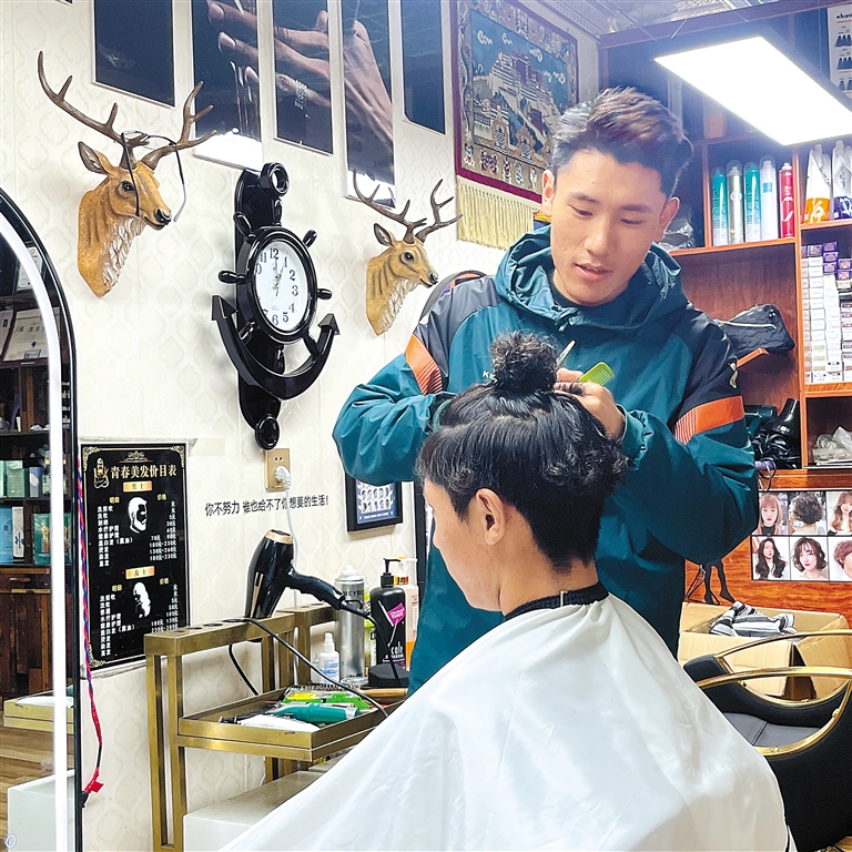 “工欲善其事,必先利其器?!卑蜕<哟肷蠈W(xué)時(shí)學(xué)的并不是美容美發(fā)專(zhuān)業(yè),為了實(shí)現(xiàn)自己的夢(mèng)想,他憑借一股闖勁,于2023年2月毅然辭職選擇創(chuàng)業(yè),遠(yuǎn)赴重慶市、日喀則市當(dāng)學(xué)徒,僅用半年時(shí)間,便學(xué)成了“洗剪吹燙染”等技能。
