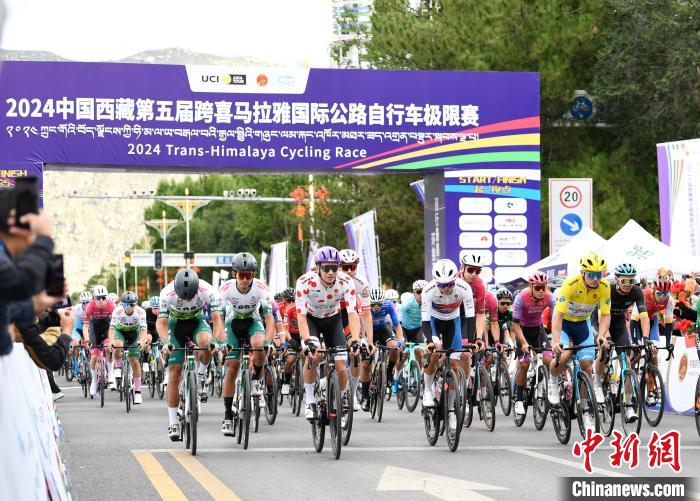 8月24日,2024中國(guó)西藏第五屆跨喜馬拉雅國(guó)際公路自行車極限賽第二賽段在拉薩開賽。據(jù)悉,本賽段總距離約90.34公里,吸引了來自中國(guó)、西班牙、哈薩克斯坦等22支車隊(duì)。圖為中國(guó)西藏第五屆跨喜馬拉雅國(guó)際公路自行車極限賽第二賽段鳴槍比賽。中新社記者 貢嘎來松 攝