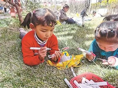 西藏自治區(qū)拉薩市城關(guān)區(qū)第十幼兒園幼兒在戶外創(chuàng)作美術(shù)作品。均為西藏自治區(qū)教育廳供圖