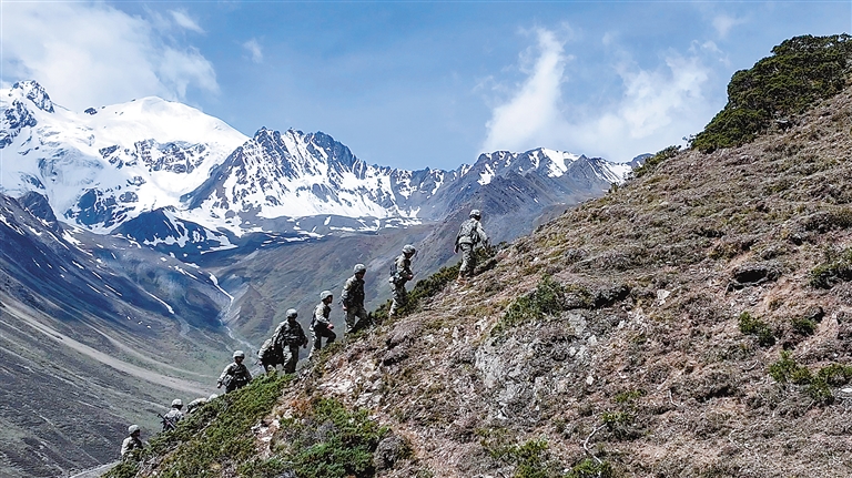 吉隆邊防連官兵在巡邏途中。崔運(yùn)紅 攝