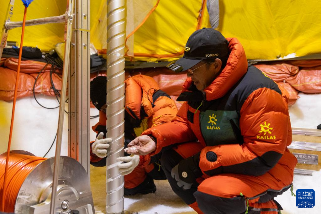 9月11日晚,由中國(guó)科學(xué)院青藏高原研究所副所長(zhǎng)徐柏青研究員帶領(lǐng)的科考團(tuán)隊(duì)在普若崗日冰原頂部海拔6100米的“Dome.C”點(diǎn)開(kāi)機(jī)鉆取冰芯。