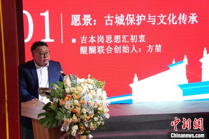 吉本崗藝術(shù)中心負(fù)責(zé)人方堃在活動中演講。記者 崔楠 攝