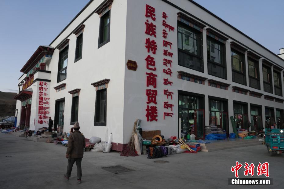 9月30日,位于西藏阿里地區(qū)普蘭縣唐噶邊貿(mào)市場(chǎng)旁的尼泊爾強(qiáng)巴國(guó)際市場(chǎng)民族特色商貿(mào)樓。中新社記者 崔楠 攝
