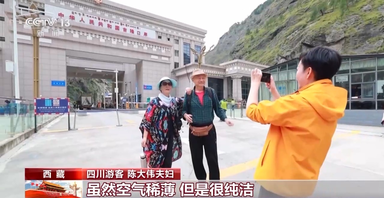 四川游客 陳大偉夫婦:雖然空氣稀薄,但是很純潔,它滌蕩了我的心靈,這是祖國的大好河山,我們一路上是唱著歌來的,看到國門激動(dòng),這就是我們的感受。沒有新中國就沒有今天,趕上這么好的時(shí)光,心有所向。