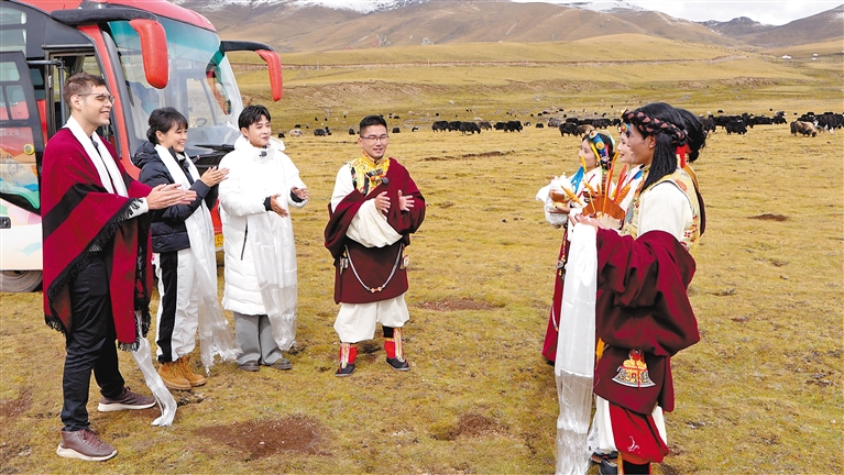 圖為貢覺縣群眾迎接“乘著大巴看中國·西藏行”活動(dòng)參加人員。記者 貢秋曲措 攝