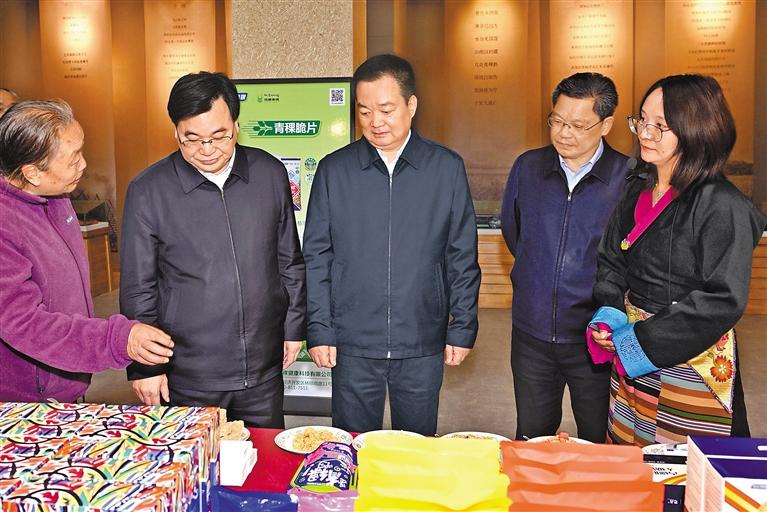 10月16日至17日,甘肅省黨政代表團(tuán)來藏考察。這是在藏期間,甘肅省黨政代表團(tuán)考察西藏奇正青稞健康科技有限公司,了解高原特色產(chǎn)業(yè)發(fā)展情況。 本報記者 旦增西旦 攝