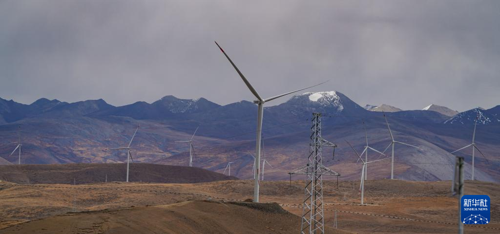 10月17日拍攝的位于西藏日喀則市薩迦縣的風(fēng)力發(fā)電機(jī)組。新華社記者 晉美多吉 攝?