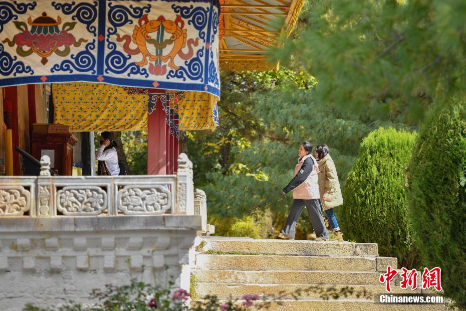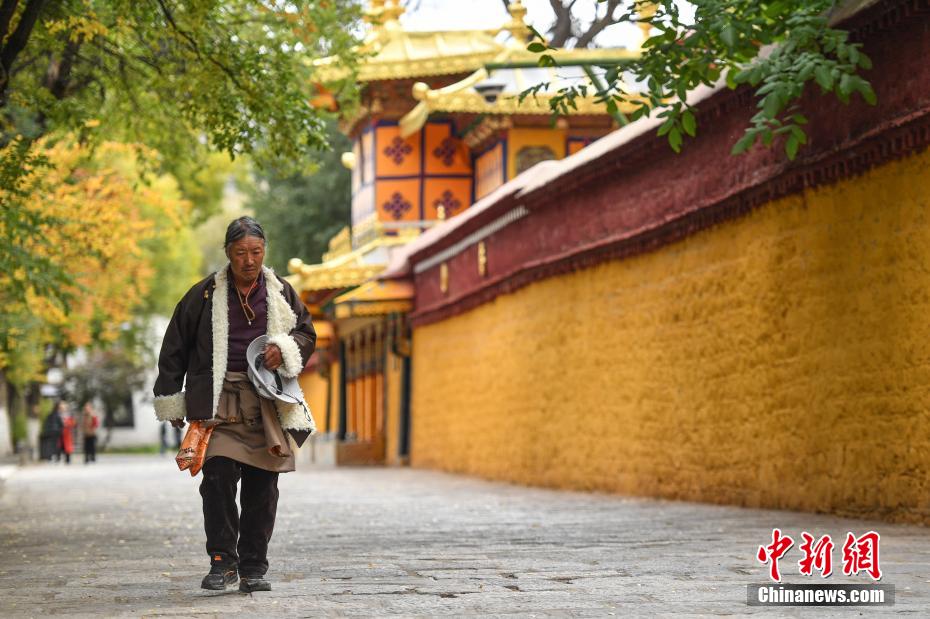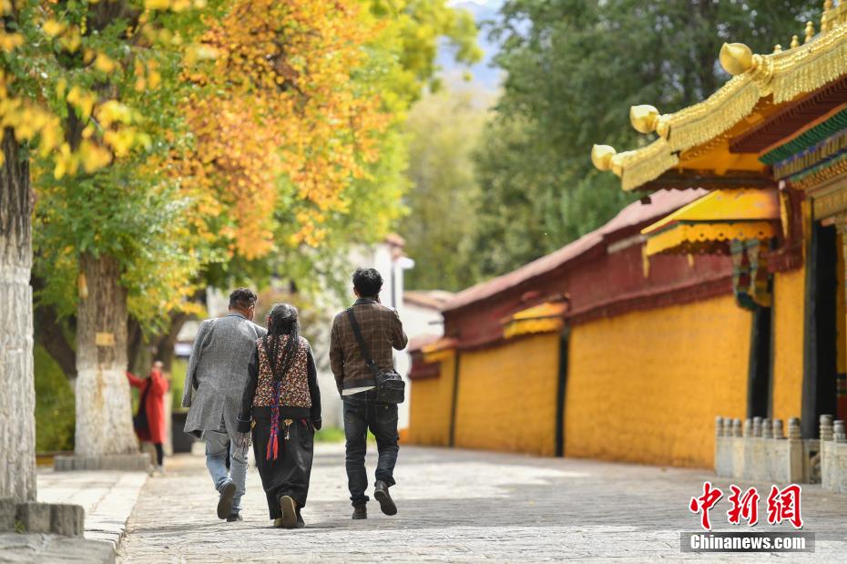 金秋十月,拉薩市西郊羅布林卡秋意正濃,景色宜人。眾多市民、游客紛紛前往打卡。羅布林卡藏語(yǔ)意為“寶貝園林”,始建于公元十八世紀(jì)40年代,是典型的藏式風(fēng)格園林,也是西藏的世界文化遺產(chǎn)之一,有格桑林卡、措吉頗章、金色頗章等宮殿建筑群。這里秋景如畫,成為人們感受自然與歷史文化的好去處。圖為10月21日,游客在羅布林卡內(nèi)參觀游覽。貢嘎來(lái)松 攝