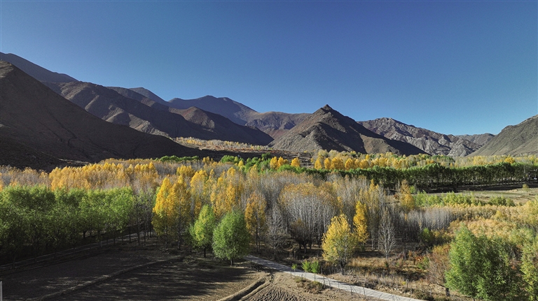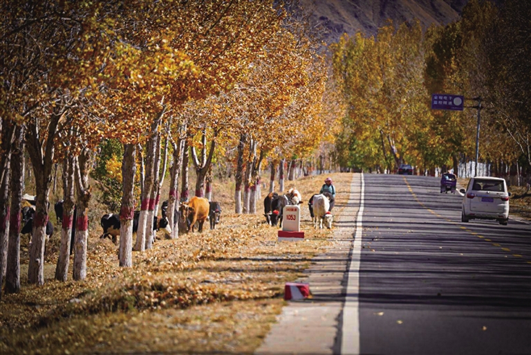 G318被稱為“中國(guó)景觀大道”,沿途壯麗絕美的風(fēng)光令人心醉神迷。恰風(fēng)和日麗的一天,記者一行驅(qū)車前往G318曲水段與達(dá)孜段。一路層林盡染,落葉飄飛,如詩(shī)如畫,美不勝收。