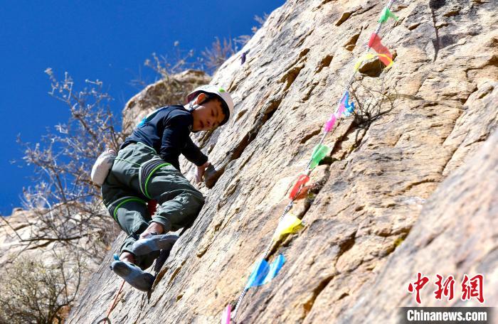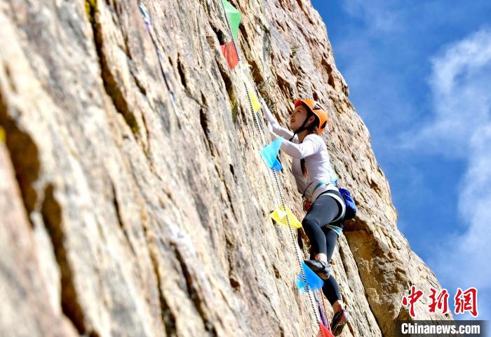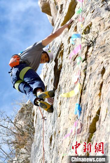 11月17日,2024年西藏自治區(qū)攀巖自然巖壁公開賽決賽在拉薩市城關(guān)區(qū)奪底街道吉倉自然巖壁場地舉行。本次賽事共有來自全國的55名選手參賽,分預(yù)賽和決賽兩輪。圖為參賽選手劉亞豪決賽中。中新社記者 李林 攝