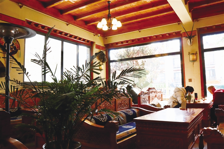實(shí)際上,拉薩城里遍布著許多甜茶館,這些小館沒有華麗的裝飾,沒有高昂的價(jià)格,甚至沒有顯眼的門牌。它們隱藏在拉薩的大街小巷中,面積不大、藏式裝修,有些老甜茶館內(nèi)桌椅都被盤“包漿”了,但這并不影響店里藏面的味道和甜茶的濃香。在拉薩,你總能在不經(jīng)意間發(fā)現(xiàn)一家不起眼的甜茶館,里面常常傳來人們的歡聲笑語。這些甜茶館不僅是人們填飽肚子的地方,更是拉薩人放松身心的溫暖港灣,承載這拉薩的文化。