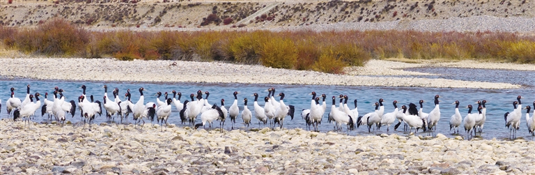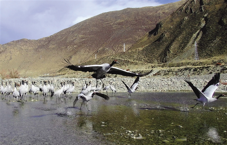 記者了解到,近年來隨著西藏高度重視黑頸鶴等野生動物的保護(hù)工作,通過建立黑頸鶴國家級自然保護(hù)區(qū)、實施生態(tài)修復(fù)工程,有效改善了黑頸鶴的生存環(huán)境。據(jù)統(tǒng)計,西藏境內(nèi)的黑頸鶴數(shù)量由不到3000只增加到1萬多只,種群數(shù)量也在持續(xù)增長。(圖由洛克 益西曲珍提供)