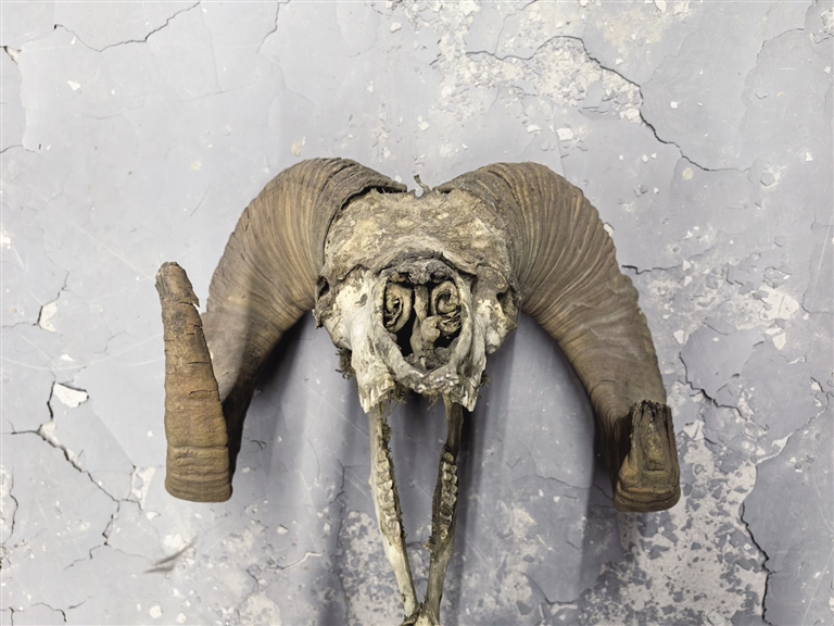 盤(pán)羊頭骨(含角)。