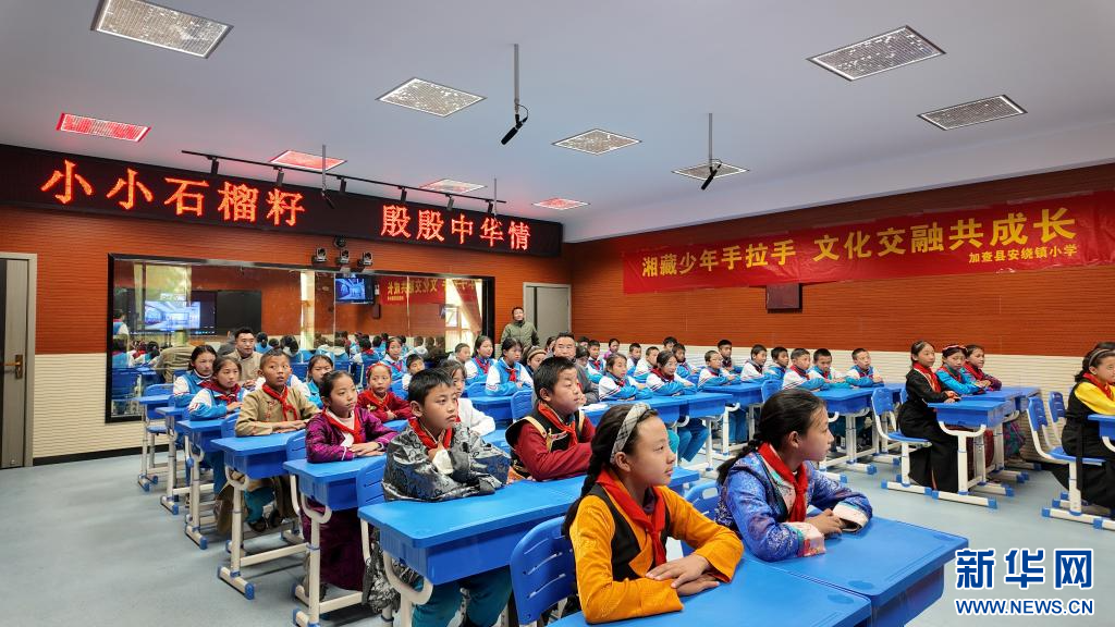走進(jìn)山南安饒鎮(zhèn)小學(xué)的同心筑夢文化園,我國各民族的簡介牌立在道路兩旁,來自不同民族的“小小講解員”介紹中國優(yōu)秀傳統(tǒng)文化;錄播教室的“空中課堂”,學(xué)生正在和湖南常德的課堂進(jìn)行直播連線……鑄牢中華民族共同體意識的種子正在稚嫩的朗朗讀書聲中生根發(fā)芽。
