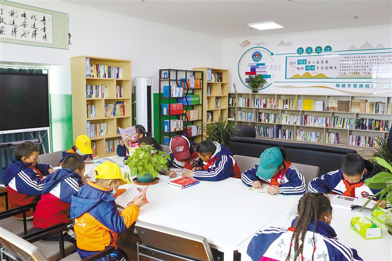 圖為亞熱鄉(xiāng)小學學生在“云上書苑”閱讀書籍。圖片由里孜出入境邊防檢查站提供