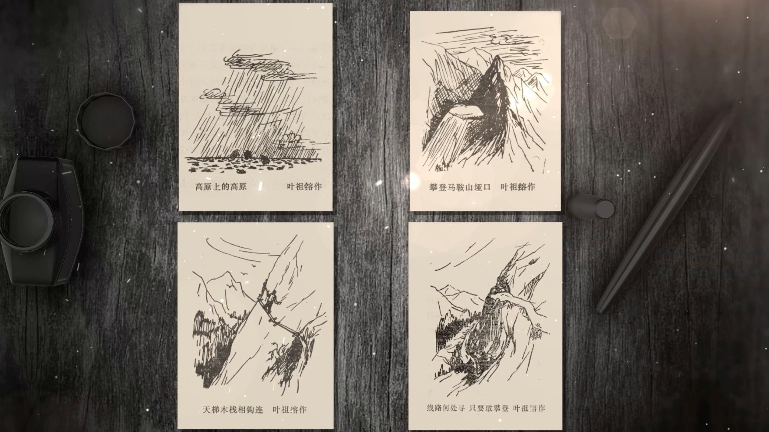 畫(huà)稿的作者是葉祖镕。他是踏勘隊(duì)中負(fù)責(zé)地形圖測(cè)繪的成員。在隊(duì)長(zhǎng)余炯帶領(lǐng)下,深入無(wú)人區(qū)進(jìn)行勘測(cè),與筑路大軍幾近失聯(lián)數(shù)月,但最終冒著生命危險(xiǎn)帶回了寶貴的勘測(cè)報(bào)告。這是葉祖镕當(dāng)年畫(huà)的素描畫(huà),高原上的高原、雪山頂?shù)膱嚎凇⒔^壁間的天梯、險(xiǎn)峰中的窄路、踏勘隊(duì)沿途經(jīng)歷的各種地形,保留在這四張手繪中,它們見(jiàn)證著在生死之間,踏勘隊(duì)員的樂(lè)觀豁達(dá)、無(wú)所畏懼。