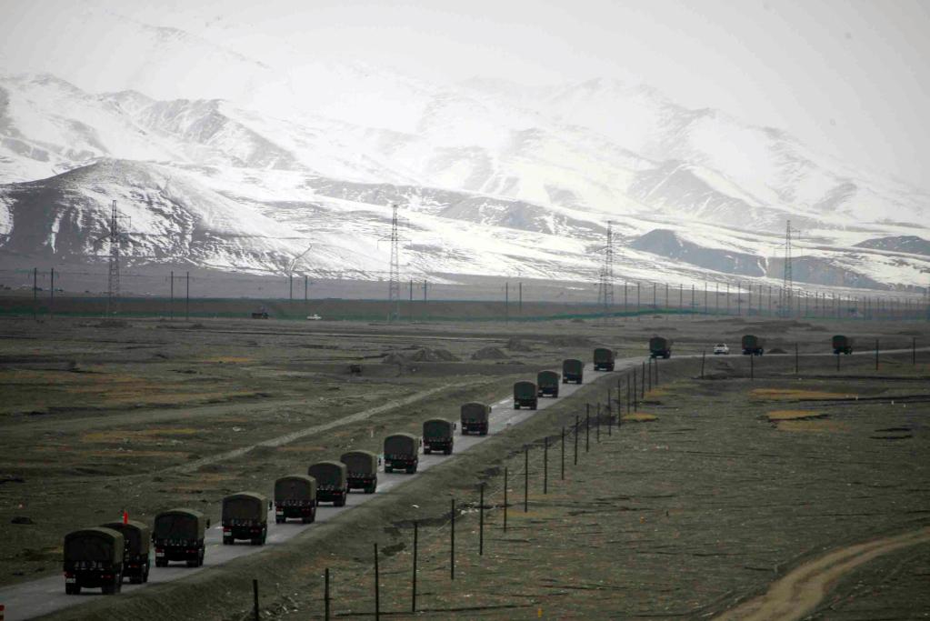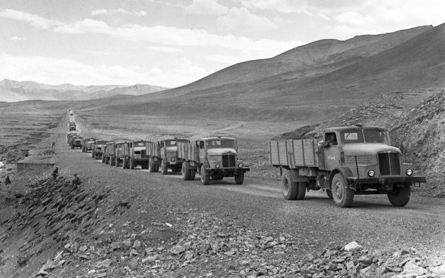 1958年,汽車(chē)隊(duì)行進(jìn)在青藏高原上。