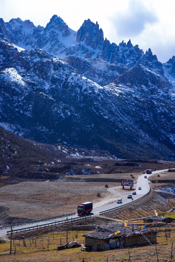 2024年11月1日,在四川省甘孜藏族自治州德格縣,車(chē)輛穿過(guò)雀兒山隧道后行駛在317國(guó)道上。