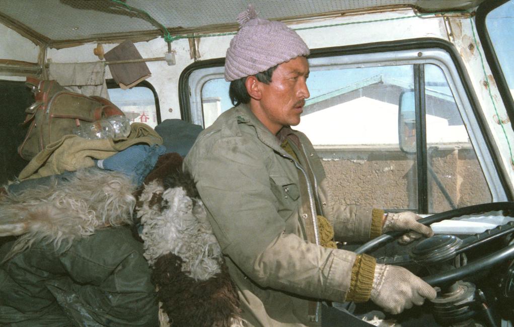 1989年拍攝的長(zhǎng)年駕車(chē)奔馳在青藏公路上的藏族司機(jī)。