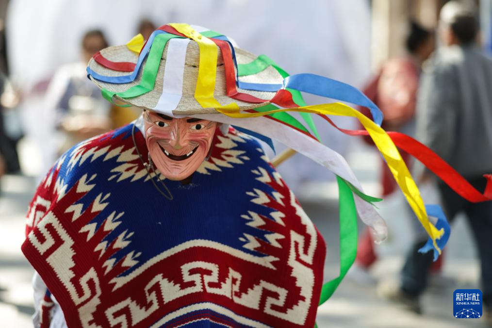 12月7日,在墨西哥米卻肯州的帕茨夸羅,舞者表演“老者之舞”。新華社發(fā)(弗朗西斯科·卡涅多攝)