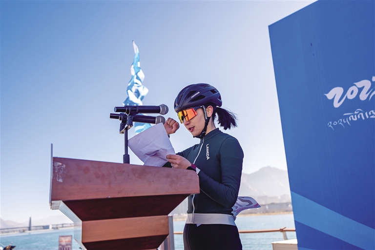 隨著發(fā)令槍響,選手們蹬踏出發(fā),瞬間點燃現(xiàn)場氣氛。經(jīng)過激烈角逐,各個組別的冠軍相繼產(chǎn)生。女子組冠軍由拉薩老隊員車隊的白瑪央吉摘得。“獲得第一名,我感到非常榮幸和開心。這個賽道設(shè)計得非常有挑戰(zhàn)性,沿途風(fēng)景如畫。這是我騎車的第五年,感謝主辦方提供了這個平臺,讓我有機(jī)會與全國各地的優(yōu)秀選手同臺競技,同時也要感謝我的隊友和教練的支持和鼓勵?!卑赚斞爰拥卣f。