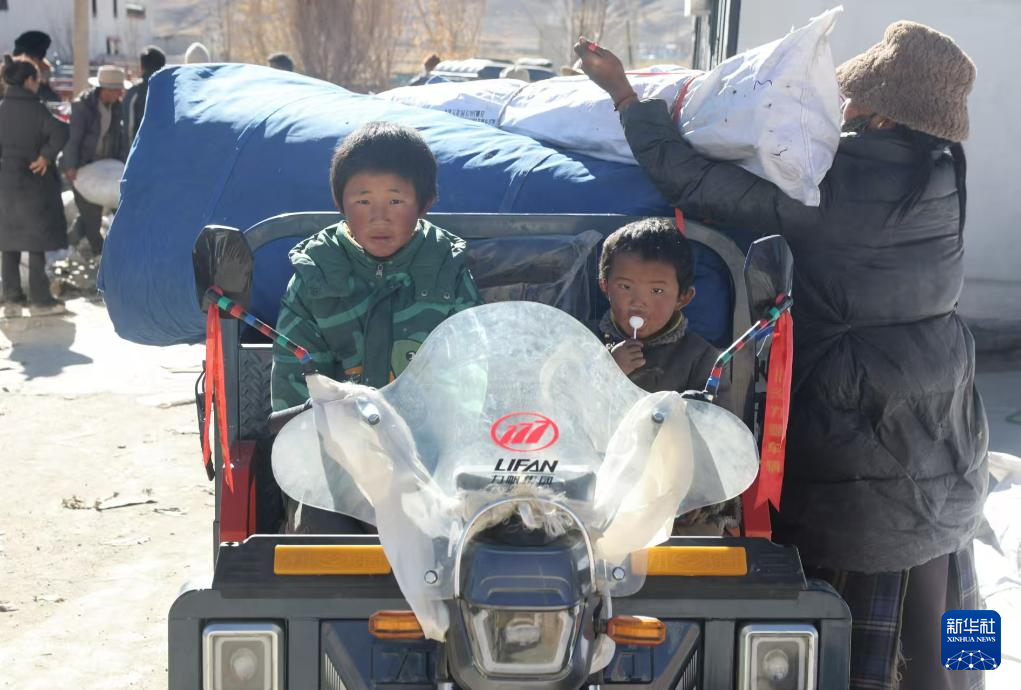 1月9日,受災(zāi)群眾在措布村村委會領(lǐng)取救災(zāi)物資。新華社記者 姜帆 攝