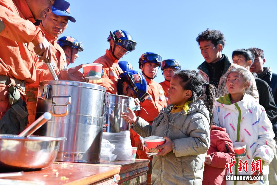 1月9日,西藏自治區(qū)定日縣曲洛鄉(xiāng)措昂村安置點,西藏自治區(qū)森林消防總隊救援人員為受災(zāi)民眾提供飲食。當(dāng)日,位于西藏自治區(qū)定日縣曲洛鄉(xiāng)措昂村安置點,西藏各級救援人員和愛心企業(yè)不斷轉(zhuǎn)運、發(fā)放生活物資、搭建活動板房、全力保障受災(zāi)民眾的飲食供應(yīng)等,保障受災(zāi)民眾基本生活。中新社記者 貢嘎來松 攝
