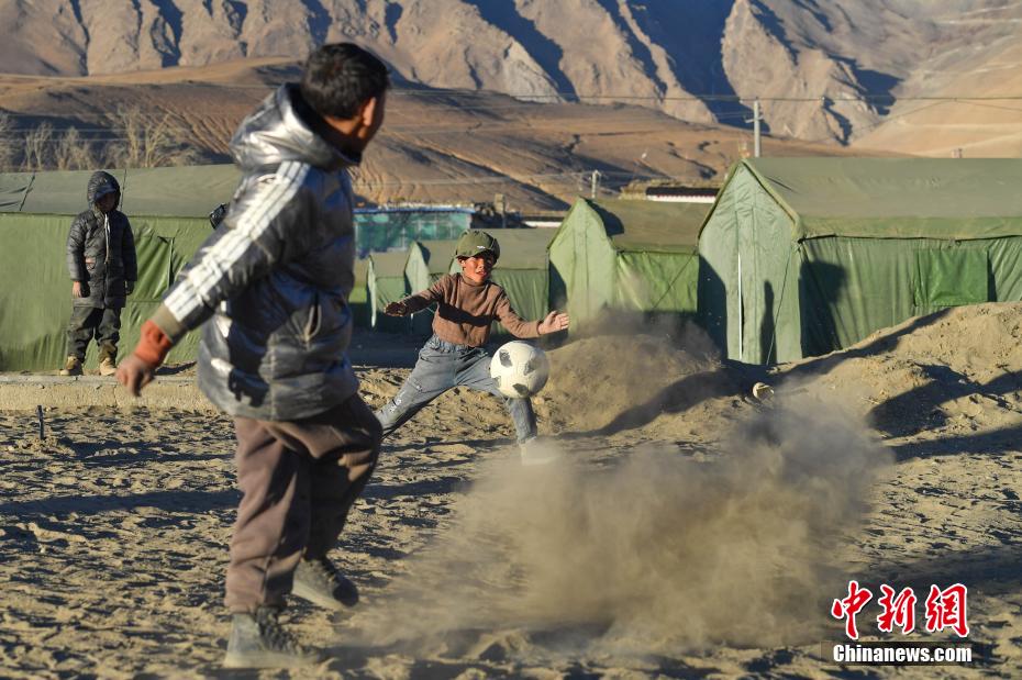 1月10日,在西藏日喀則市定日縣長所鄉(xiāng)森嘎村安置點,夕陽下,孩子們分組開展點球大戰(zhàn)。地震雖給村莊帶來傷痛,但安置點物資保障充足,孩子們在艱苦環(huán)境中仍保持樂觀,用簡單的游戲傳遞著對生活的熱愛和希望。貢確 攝