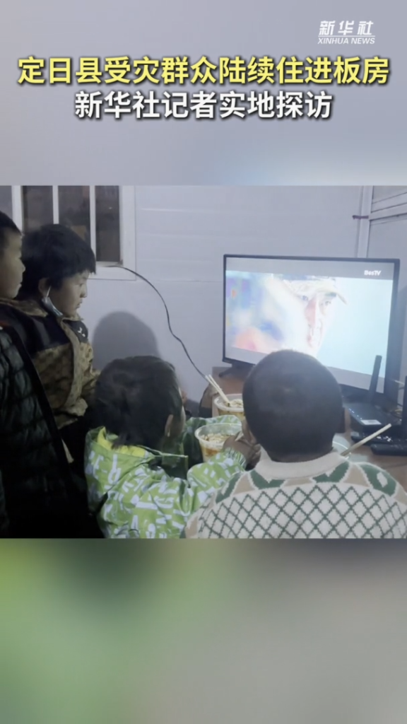 11日,西藏定日縣長(zhǎng)所鄉(xiāng)古榮村板房安置點(diǎn)接通寬帶、IPTV網(wǎng)絡(luò)電視。孩子們圍坐在電視機(jī)前,說想要觀看電影《戰(zhàn)狼》。這是此次西藏定日縣6.8級(jí)地震災(zāi)區(qū)第一個(gè)接通有線千兆寬帶和IPTV網(wǎng)絡(luò)電視、實(shí)現(xiàn)Wi-Fi覆蓋的活動(dòng)板房。