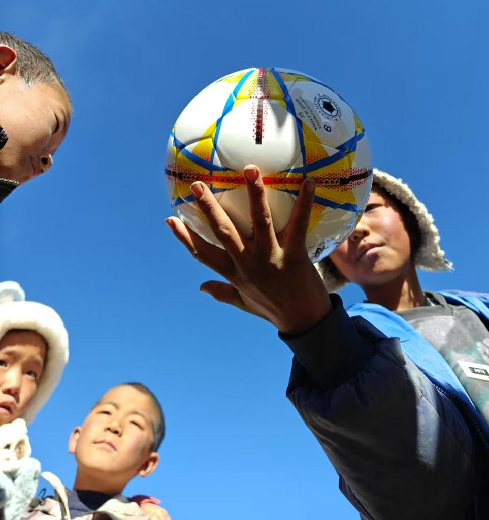 男孩子們喜歡踢球,譚惜仁給他們找來足球,兩個(gè)土塊一擺就是球門,開踢。他們給自己起了個(gè)響亮的名字——“牦牛隊(duì)”!