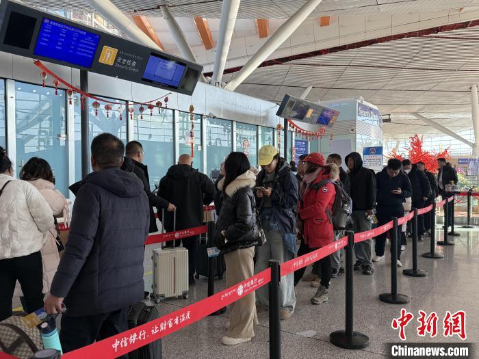 圖為旅客正在排隊(duì)等待進(jìn)行安全檢查。澤塔雍措 攝