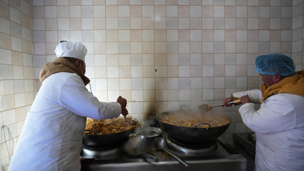 1月14日,服務隊的兩名廚師正在為村民們做午飯。新華社記者 邱星翔 攝
