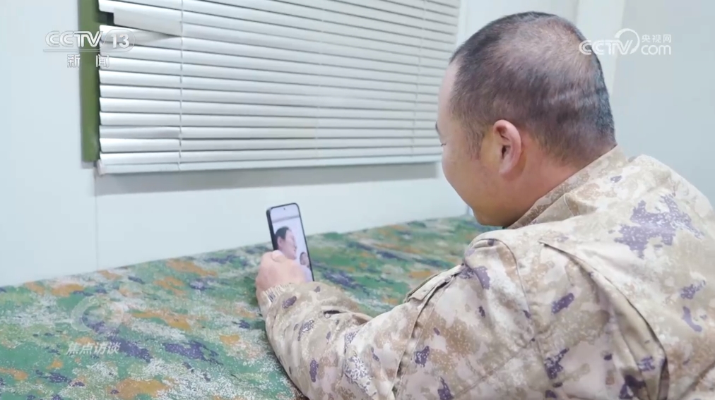 家人,是戍邊人心里永遠的牽掛,每當空閑時,他們就會跟家人打打電話,聊聊天。