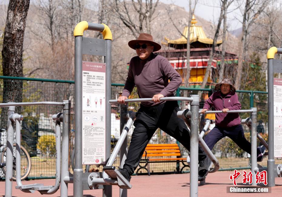 3月13日,民眾在西藏拉薩宗角祿康公園健身。坐落于布達(dá)拉宮腳下的宗角祿康公園是拉薩民眾戶外活動的一大場所。隨著3月春回拉薩,大家來到公園散步、健身,一片春意盎然的景象。中新社記者 李林 攝