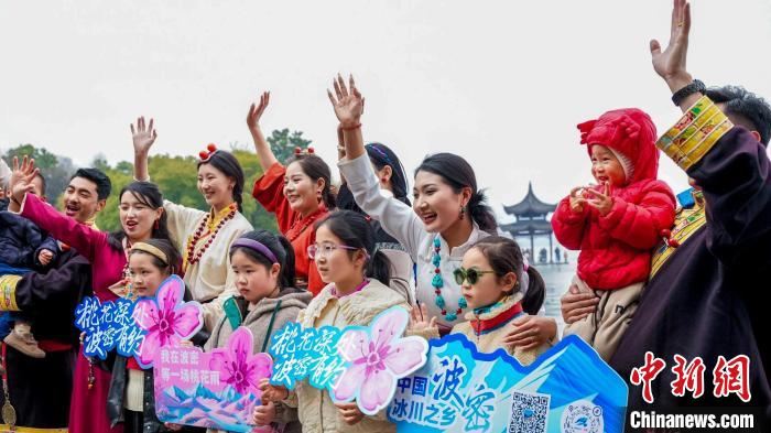 活動當天,身著彩云紋藏裝的波密兒女踏歌而來,沿著斷橋、雷峰塔等西湖文化地標,開啟流動的藝術巡演。藏式廣袖輕揚間掠過湖光,自發(fā)加入的游客與藏族演員即興共舞,在千年勝景中勾勒出民族交往交流交融的動人圖景。活動現(xiàn)場,熱情的藏族姑娘、藏族小伙為參與互動的游客送上“桃花氣球”和文創(chuàng)禮品,將高原春日的印記留在江南水岸。