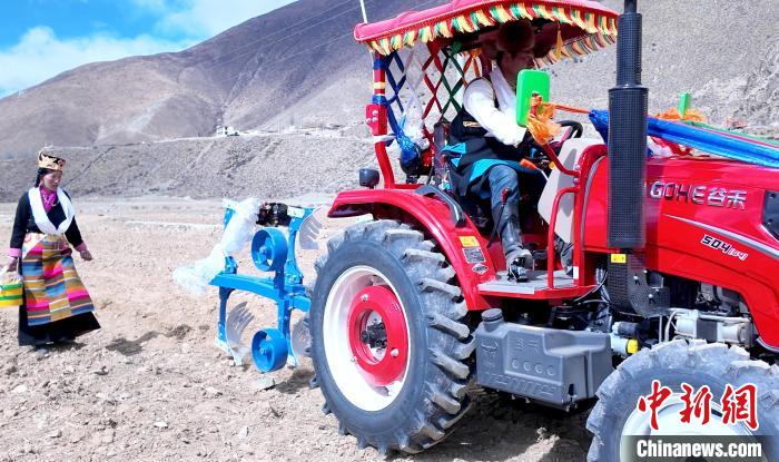 開(kāi)犁的時(shí)間到了,傳統(tǒng)的“二牛抬杠”開(kāi)啟春耕“第一犁”。隨后,拖拉機(jī)入田開(kāi)耕,婦女跟在拖拉機(jī)后面,播撒青稞種子。