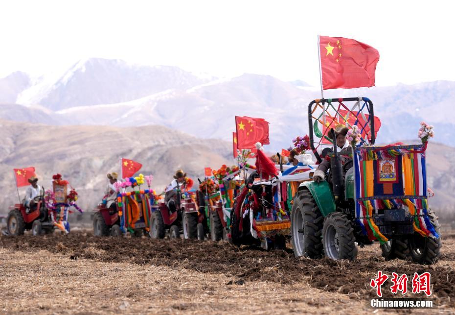 3月16日,是西藏農(nóng)區(qū)開耕的日子。村民身著節(jié)日盛裝,相聚在田間。傳統(tǒng)的“二牛抬杠”開啟“第一犁”后,拖拉機緊隨其后,婦女將手中的種子撒下,祈求風調(diào)雨順、農(nóng)業(yè)豐收。圖為西藏拉薩市林周縣強嘎鄉(xiāng)春耕儀式現(xiàn)場。中新社記者 李林 攝