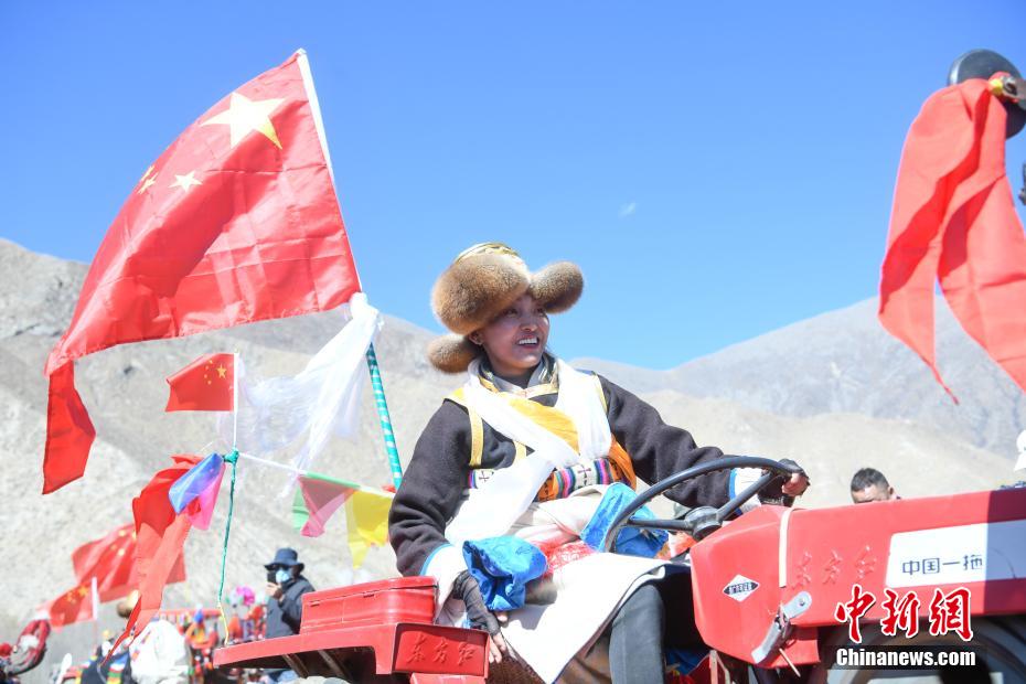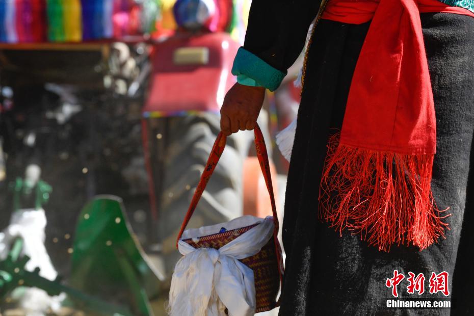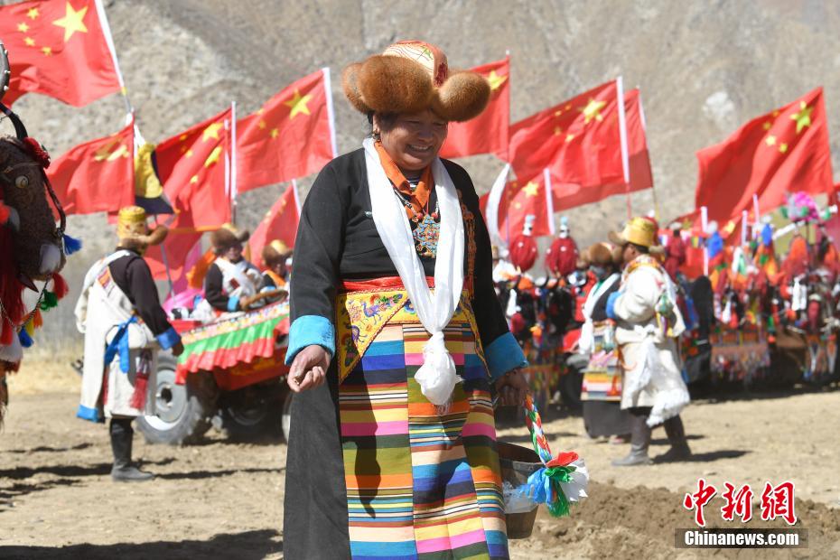 3月16日,西藏拉薩迎來(lái)一年一度的傳統(tǒng)春耕儀式。當(dāng)日,拉薩市曲水縣色達(dá)村村民身著節(jié)日盛裝,相聚在田間,載歌載舞,共同迎接春耕第一犁。家家戶(hù)戶(hù)端著自家的“切瑪”(象征五谷豐登)帶著青稞酒、酥油茶等物品聚在田間,互敬青稞酒,開(kāi)始撒種,祈求全年風(fēng)調(diào)雨順、五谷豐登。圖為曲水縣色達(dá)村春耕儀式現(xiàn)場(chǎng),當(dāng)?shù)孛癖姳硌菸璧浮栋⒓诎汀贰?span>中新社記者 貢嘎來(lái)松 攝
