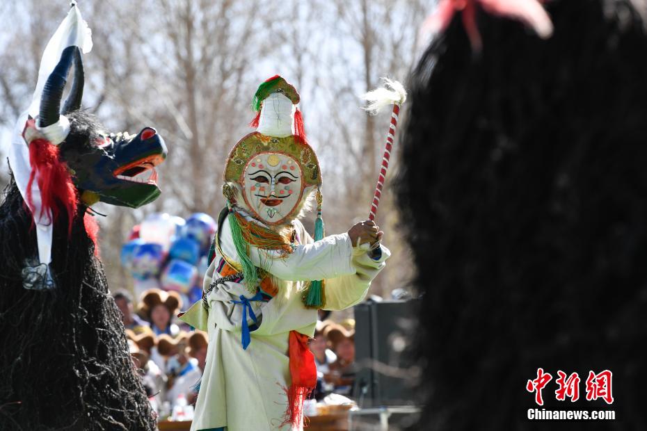 3月16日,西藏拉薩迎來(lái)一年一度的傳統(tǒng)春耕儀式。當(dāng)日,拉薩市曲水縣色達(dá)村村民身著節(jié)日盛裝,相聚在田間,載歌載舞,共同迎接春耕第一犁。家家戶(hù)戶(hù)端著自家的“切瑪”(象征五谷豐登)帶著青稞酒、酥油茶等物品聚在田間,互敬青稞酒,開(kāi)始撒種,祈求全年風(fēng)調(diào)雨順、五谷豐登。圖為曲水縣色達(dá)村春耕儀式現(xiàn)場(chǎng),當(dāng)?shù)孛癖姳硌輫?guó)家級(jí)非物質(zhì)文化遺產(chǎn)《吉祥仲孜》。中新社記者 貢嘎來(lái)松 攝