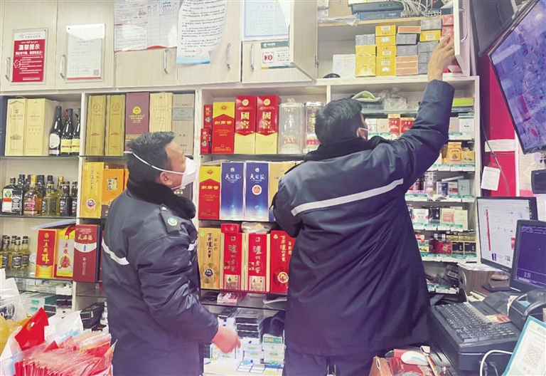 執(zhí)法人員在煙草專賣店檢查。(資料圖)