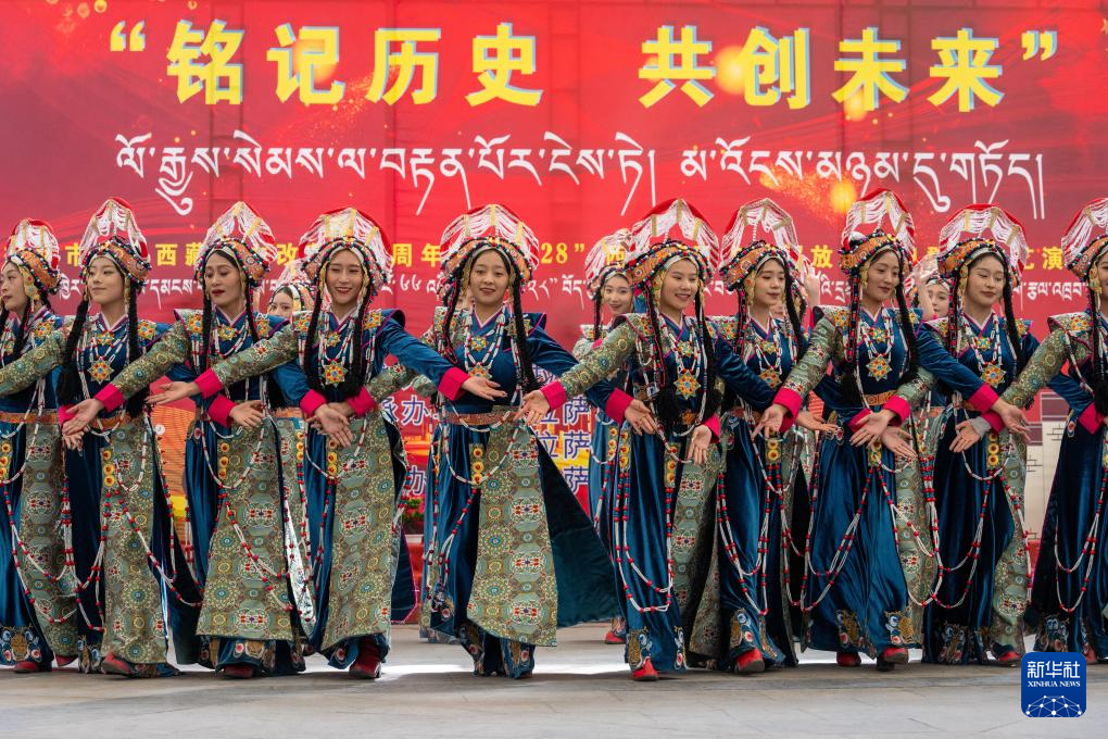 3月28日,西藏各族各界群眾升國(guó)旗、唱國(guó)歌,載歌載舞,隆重紀(jì)念西藏百萬(wàn)農(nóng)奴解放66周年。
