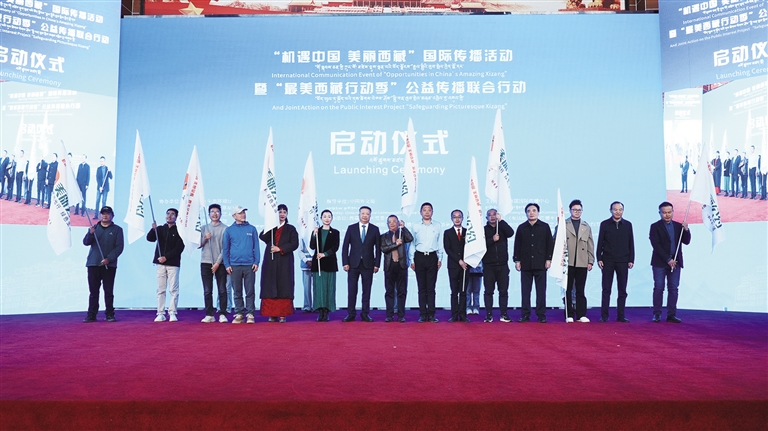 嘉賓共同啟動(dòng)“最美西藏行動(dòng)季”公益?zhèn)鞑ヂ?lián)合行動(dòng)。 圖由西藏自治區(qū)黨委宣傳部提供