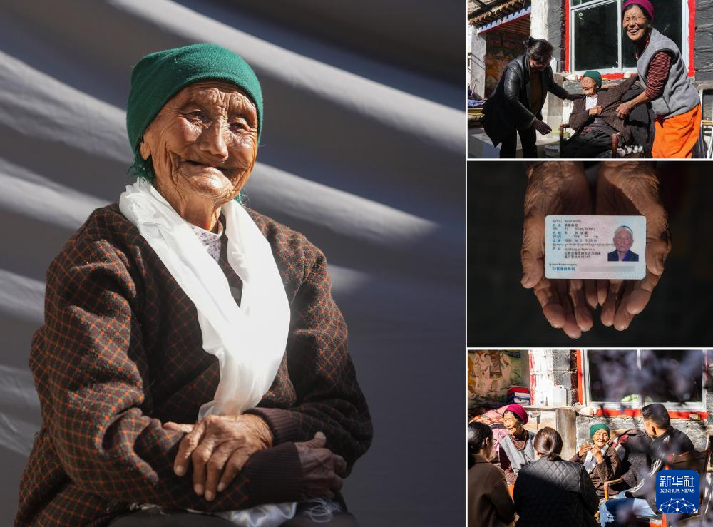 右中:這是某朗桑姆老人的身份證(3月20日,新華社記者丁增尼達(dá)攝)。