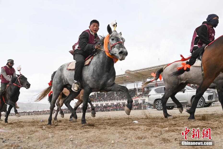 4月23日至28日,西藏自治區(qū)拉薩市當(dāng)雄縣2025年“當(dāng)吉仁”賽馬系列活動(dòng)之第二屆東日馬超邀請賽,在當(dāng)雄縣賽馬場激情上演?!爱?dāng)吉仁”賽馬會歷史底蘊(yùn)深厚,自公元17世紀(jì)誕生以來,至今已有300多年歷史。作為國家級非物質(zhì)文化遺產(chǎn),它深受民眾喜愛。本次邀請賽亮點(diǎn)十足,共設(shè)置了12個(gè)不同難度的馬匹速度賽和走馬比賽。其中,公馬種馬走馬項(xiàng)目和本地馬圈跑7千米的比賽,尤其引人注目。參賽馬匹來自青海、四川、云南、甘肅等地,“達(dá)確”“八一”等知名馬匹紛紛亮相賽場?;顒?dòng)期間,內(nèi)容豐富多樣。除了緊張刺激的賽馬,當(dāng)雄縣藝術(shù)團(tuán)還帶來了精彩的文藝節(jié)目。夜晚,觀眾還能圍著篝火跳起鍋莊舞。賽場設(shè)置了241個(gè)餐飲和商品展銷點(diǎn)位,以及14個(gè)娛樂點(diǎn)位,充分滿足觀眾的多樣需求。此次活動(dòng)日均人流量超1.2萬人次,撬動(dòng)經(jīng)濟(jì)增長4000余萬元(人民幣),為鄉(xiāng)村振興增添助力。圖為第二屆東日馬超邀請賽比賽現(xiàn)場。中新社記者 貢嘎來松 攝