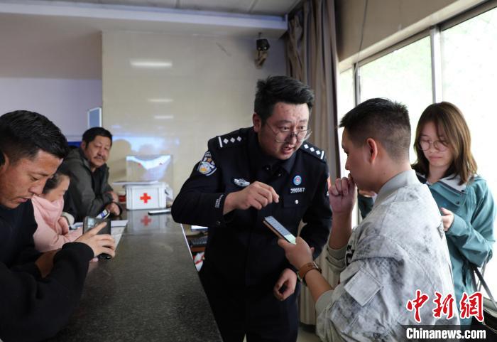 圖為西藏邊檢總站執(zhí)法調查支隊民警耐心為群眾解答疑問。沈鵬飛 攝